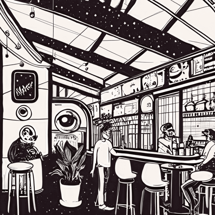 Galaktik Uzay Cafe’sinin sahipleri (Mowky ve Pete): Kahve stokları azaldıkça gelir kaybından endişe ediyorlar.